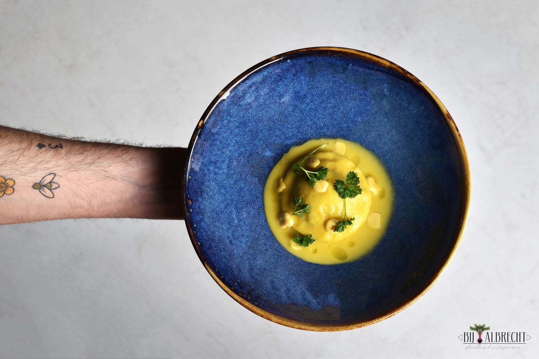Ik werk graag met lupine omdat het past bij het duurzame aspect van mijn plantaardige keuken. De veelzijdigheid van het gouden boontje is enorm en het voegt iets toe aan de leefbaarheid van moeder aarde doordat de plant vruchtbare bodem creëert voor nieuwe gewassen.